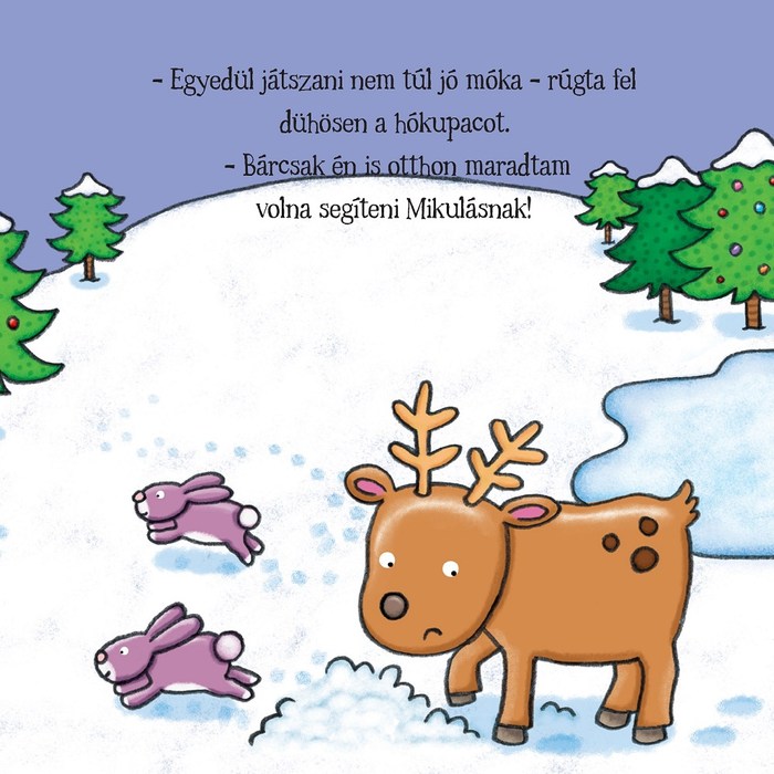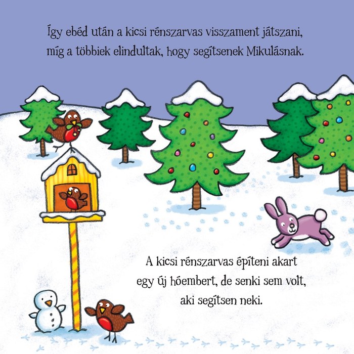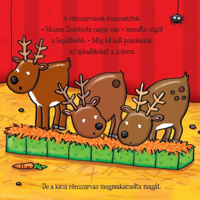 Szenteste napján rengeteg a tennivaló a Mikulás háza táján. Az összes rénszarvas tudja a dolgát, ám a kicsi rénszarvas külön utakon jár. Vajon rájön, hogy hol a helye?